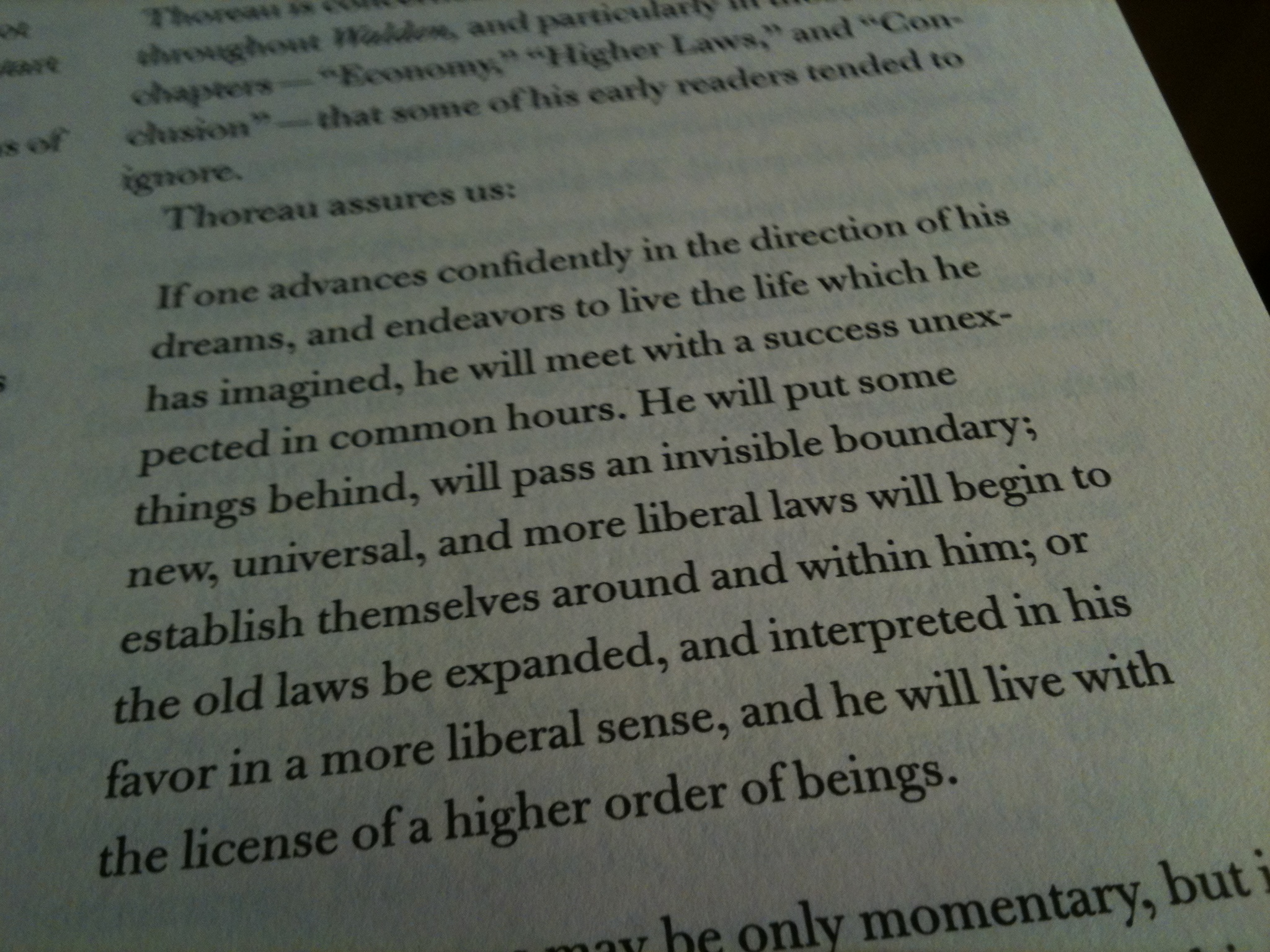 “If one advances confidently in the direction of his dreams, and endeavours to live the life he has imagined, he will meet with success unexpected in common hours. He will put some things behind, will pass an invisible boundary; new, universal, and more liberal laws will begin to establish themselves around and within him; or the old laws be expanded, and interpreted in his favor in a more liberal sense, and he will live with the license of a higher order of beings.”